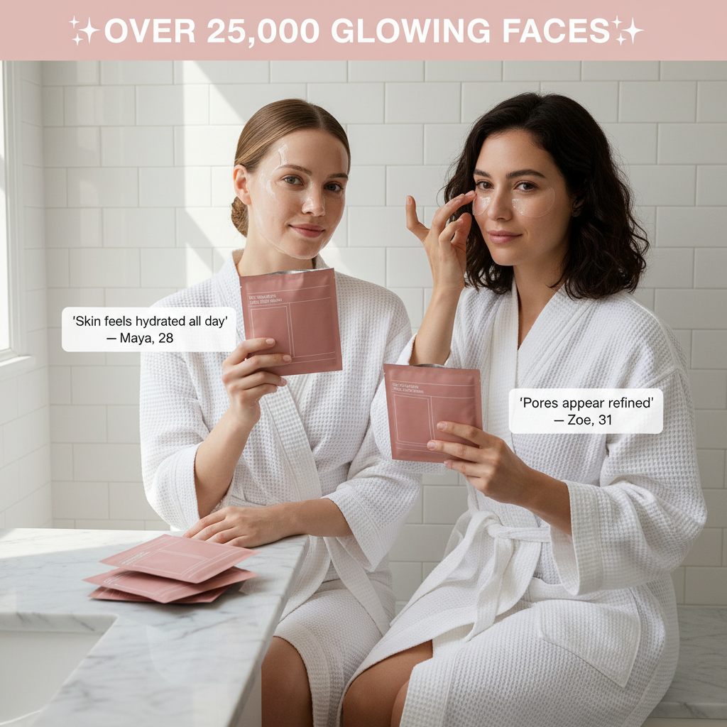 I used the serum + collagen mask together for 5 nights straight and my skin genuinely looks smoother and more hydrated in the morning. The glow isn’t greasy — it’s just really healthy-looking. The lip mask is now a must before bed.— Emily R.